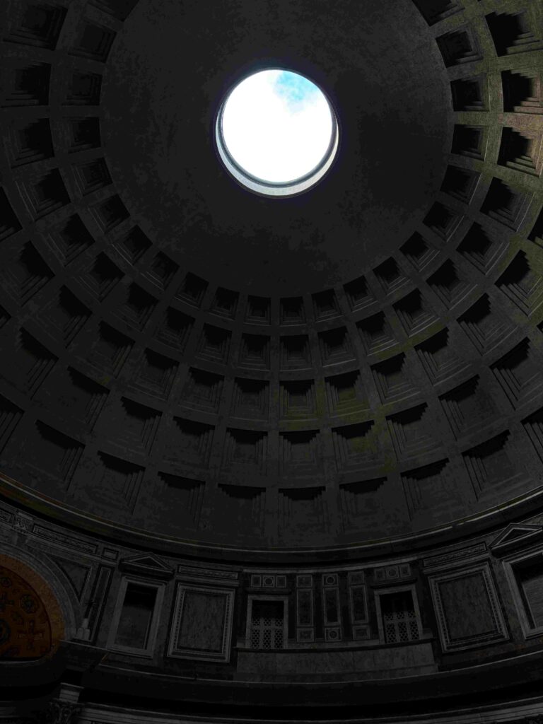 これはパンテオン神殿です。万有神殿とも呼ばれ、人体と宇宙の調和を示す完全形である球を内包する美しい神殿です。