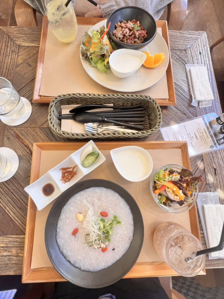先日近所の薬膳カフェのモーニングに行ってきました!モーニングセットは薬膳グラノーラ、薬膳粥、自家製パンの三種類あり、どれもサラダと自家製ヨーグルトがついています。今回は友達とお粥とグラノーラを食べましたが、漢方や様々な穀物をおいしく食べることができ、身体が整うのを感じました。
